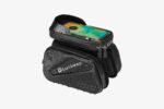WATERPROOF —— Carbon composite material with sealed zippers closure made waterproof bike frame bags. SUN VISOR helps you watch phone screen clearly even under strong sunlight or rainy day